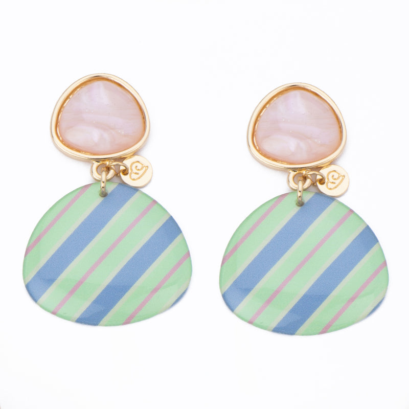 Questi orecchini con top in metallo dorato a forma di plettro in resina rosa antico sono completati da un pendente a stampa Baiadera: per un effetto vivace, giocoso e dal fascino estivo.