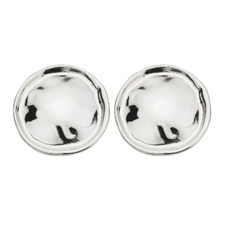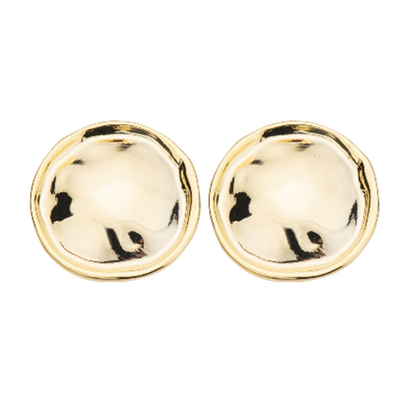 Questi orecchini con top a perno presentano un raffinato design a forma di bottone in metallo, impreziosito da una delicata texture ondulata che dona un effetto luminoso e sofisticato.