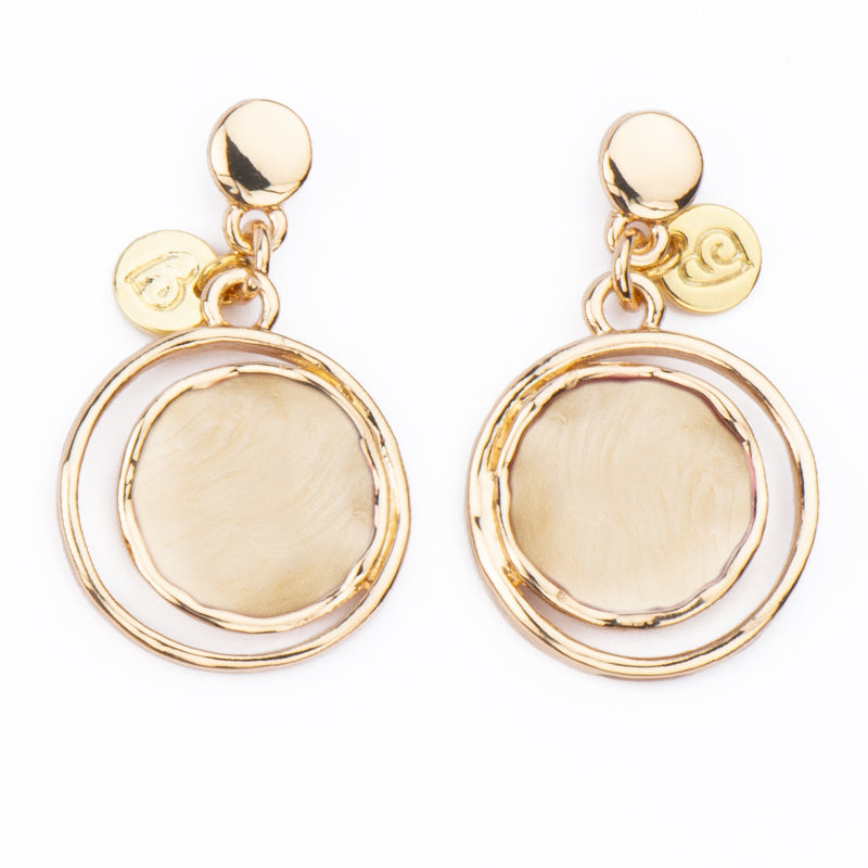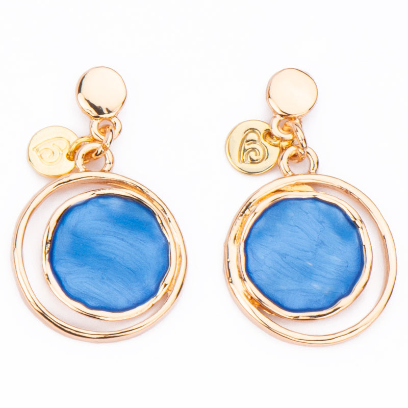 Orecchini con top rotondo con pendente a cerchio con smalto satinato avorio/blu royal.