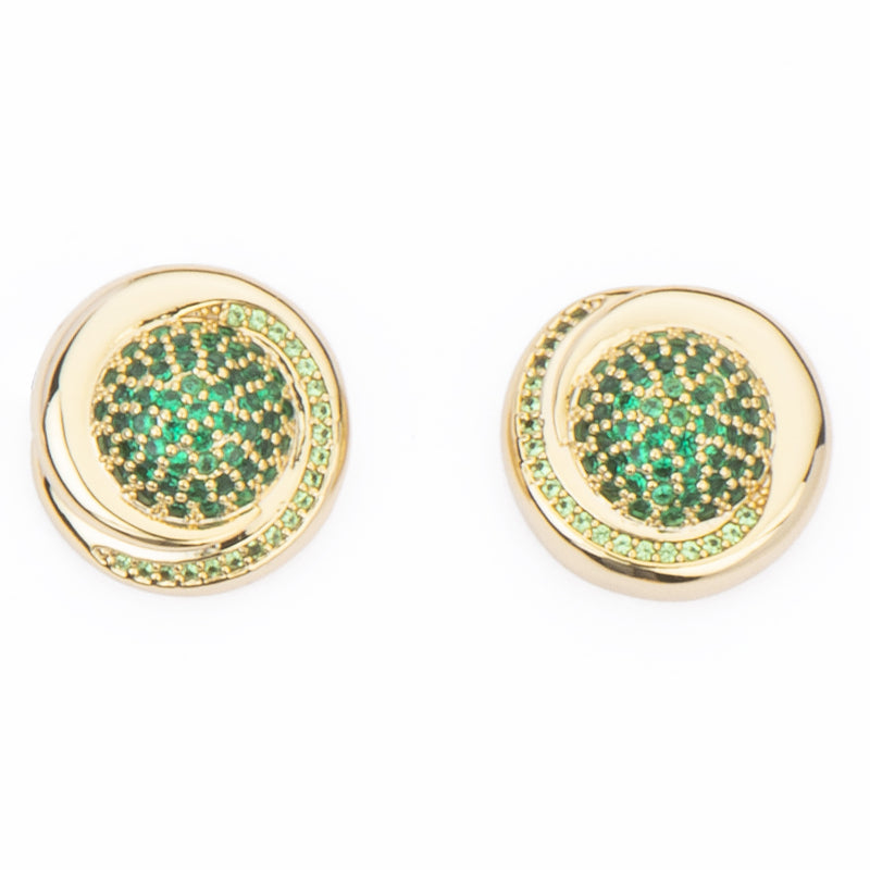 Orecchini di metallo dorato con top a forma di bocciolo in pavè di zirconi smeraldo e peridot/fucsia e pink.