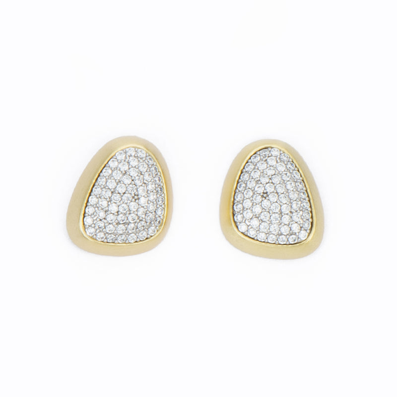 Orecchini con top in metallo satinato e dorato con pavè di cristalli clear.