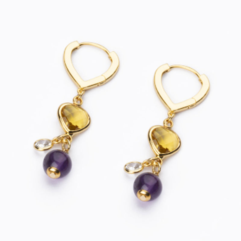 Questi orecchini a creola in brass sono impreziositi da una goccia in cristallo, un punto luce in zircone e pietre dure che aggiungono un tocco di colore e raffinatezza: perfetti per un look originale.