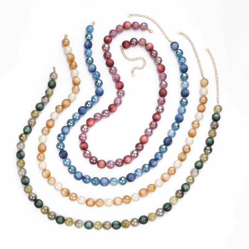 Questo set di 4 collane presenta sfere da 16 mm ad effetto aurora boreale in colori iridescenti alternati: per un look scenografico e giocoso da indossare singolarmente o in layering.