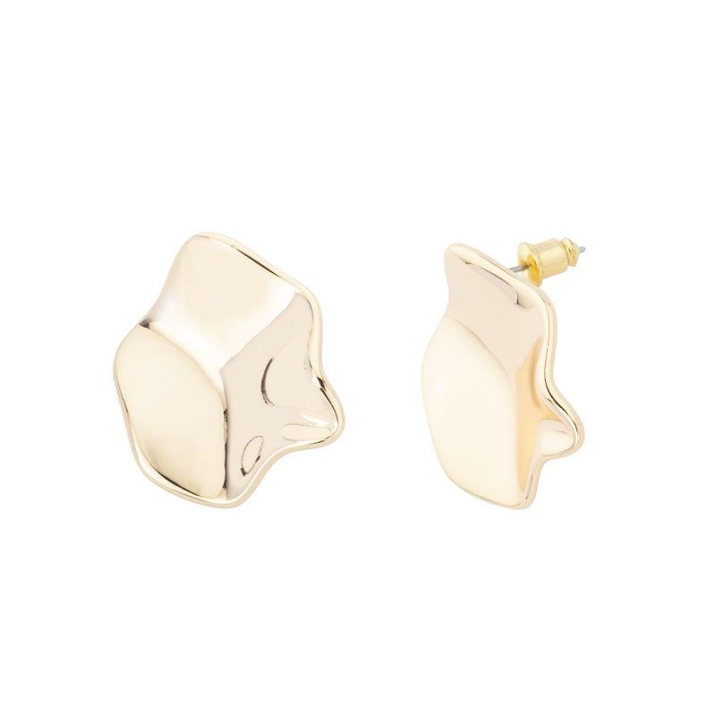 Orecchini con top irregolare a forma di foglia arrotondata effetto crumpled in metallo dorato/rodiato.